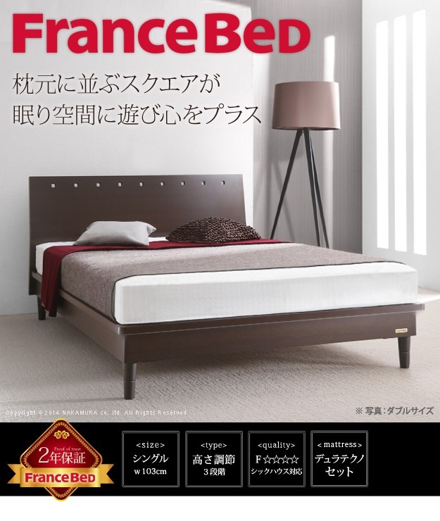 【!ご注文前に必ずご確認下さい!】●メーカー直送のため代金引換はお受けできません。●沖縄・一部離島は別途送料がかかります。お見積りいたしますのでお問い合わせ下さい。●商品サイズと設置場所、搬入経路のご確認をお願いいたします。●受注生産品のため、発注後のキャンセル及び変更はお受けできませんのでご了承ください。●安心のメーカー2年保証商品について:3段階のお好みの高さに調節できます。ヘッドボードはスタイリッシュなデザインですっきり。波型加工を施したすのこ床板は通気性抜群です。サイズ(cm):[ベッド]幅103x奥行208x高さ87.5/80/73(床板高さ29.5/22/15)cm・約37kg、[マットレス]幅97x奥行195x高さ23cm・約20kgベッドカラー:ダークブラウン・ライトブラウン材質:[ベッド]本体-プリント紙化粧合板、床板-スノコ床板、[マットレス]側地-ポリエステル50%・ポリプロピレン50%、中身-ウレタンフォーム・パームパッド・ポリエステル綿・防虫不織布・羊毛、コイル-デュラテクノスプリング・コイル数450、通気孔-アイレット加工組立品株式会社ナカムラ(i-4700170)