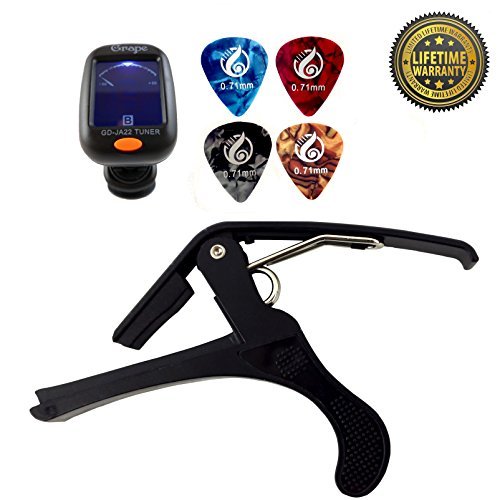 Welcome to our All-In-One Starter Guitar Kit! The only guitar capo, tuner and picks you'll ever need.