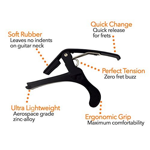 Our guitar capo is guaranteed to apply just the right amount of tension on your neck in order to stop fret buzz. Keep in mind that other capos have far too much tension and end up leaving an indent on guitar necks. With ours, you will never have to worry about that ever again!