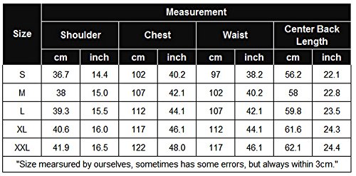 XXL:Shoulder: 16.5--Waist: 46.1--Chest: 48.0--Center Back Length: 24.4