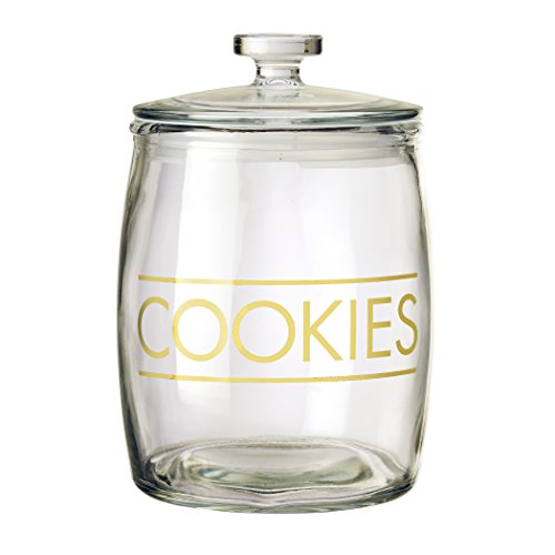Amici Home, 7CN136R, Concord Clear Glass Cookie Jar, Gold Cookies Decal, Clear Glass Lid, Food Safe, 142 Ounces