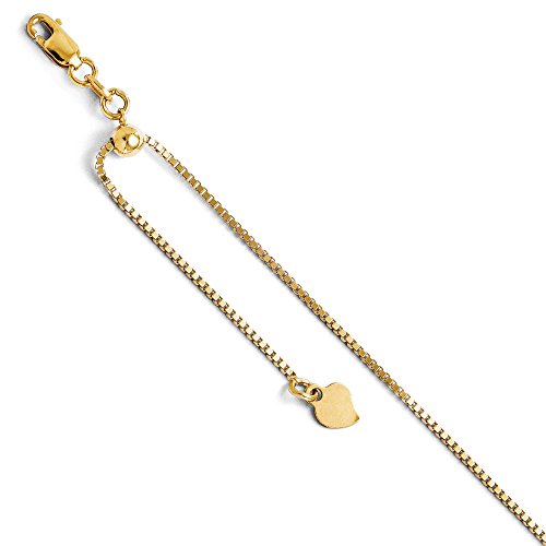 -. Title : 1mm 14K Yellow Gold Adjustable Box Chain Anklet, 11 Inch