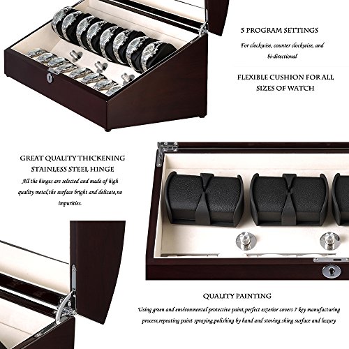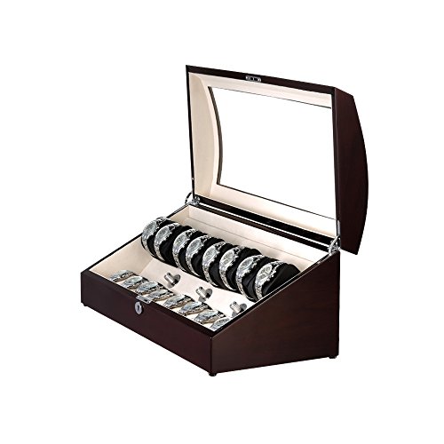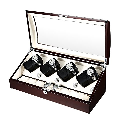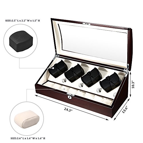 -. Title : OLYMBROS Wooden Quad Automatic Watch Winder 8+8 Storage Boxes for 16 Watches with LED Light