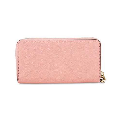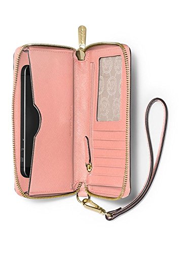 Rendered in Saffiano leather with gold-tone hardware, this sleek case is the perfect all-in-one accessory. It features a dedicated pocket for your phone and a wealth of card slots for easy organization. A must-have when traveling, tuck it into your everyday carryall for effortless elegance. This practical case holds an iPhone® 5 or iPhone® 6 for convenience. 8.5-in. W x 4.5-in. H x 1-in. D Zip closure Interior: 1 bill compartment, 1 zip pocket, 5 credit card slots, 1 ID window Wristlet strap with 6-in. drop Gold-tone hardware; self-color stitch trim Saffiano leatherFeature