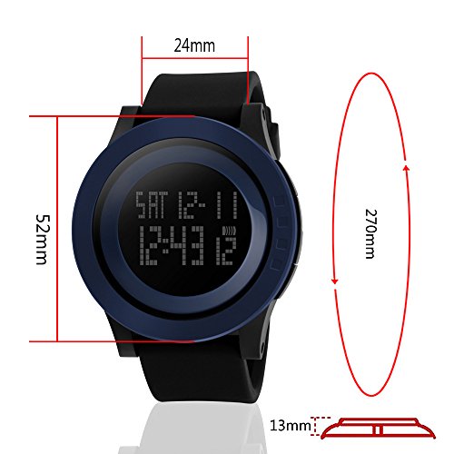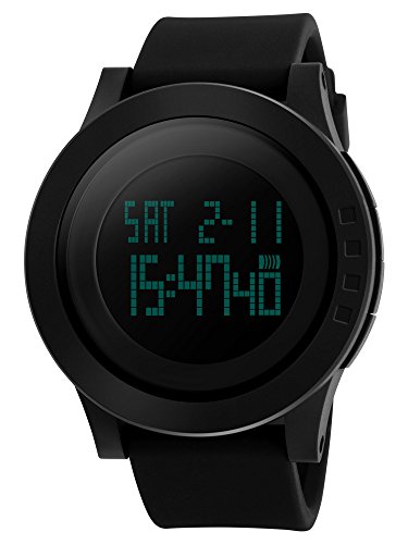 SKMEI 손목시계 맨즈 멋쟁이 심플 디지탈 3기압 방수 LED 날짜 요일 알람 크로노그래프 캘린더 카운트다운 듀얼 타임 실리콘 벨트 블랙 그린