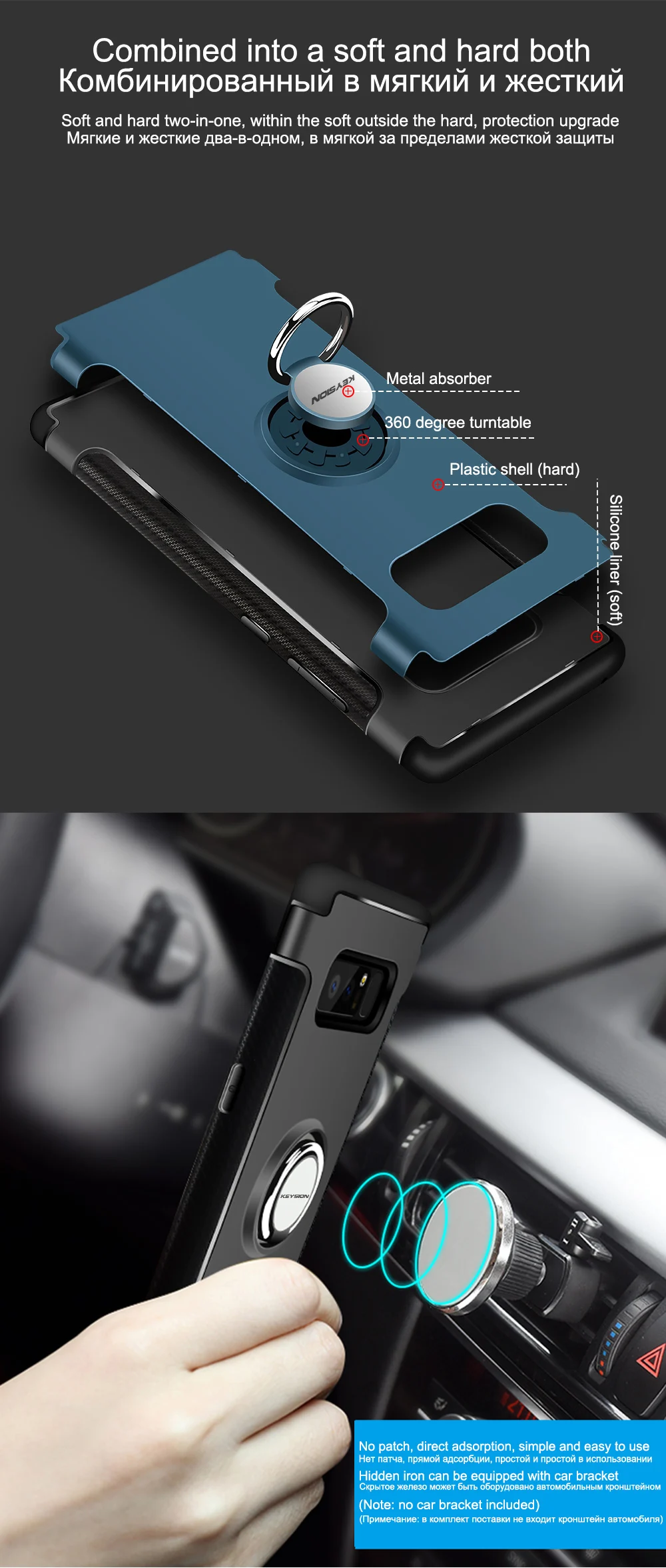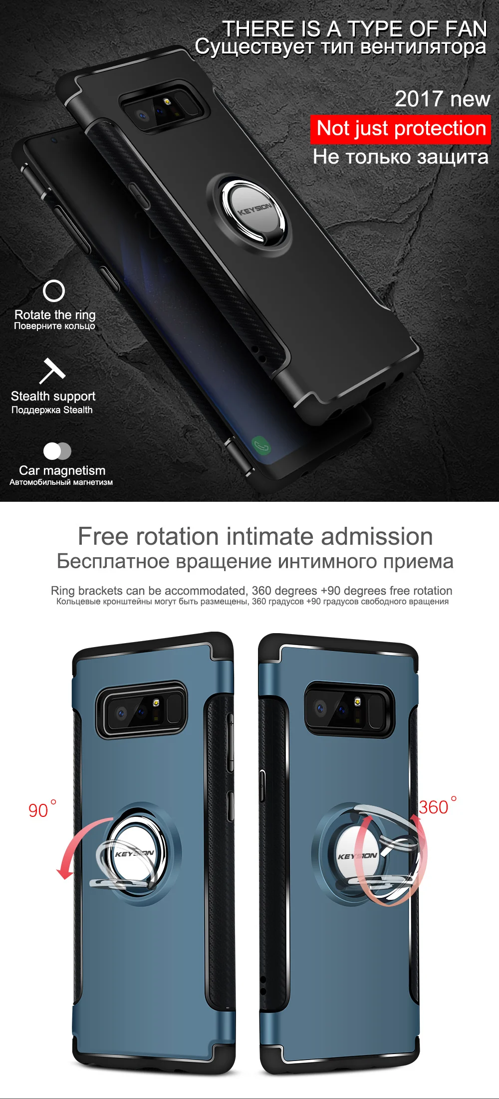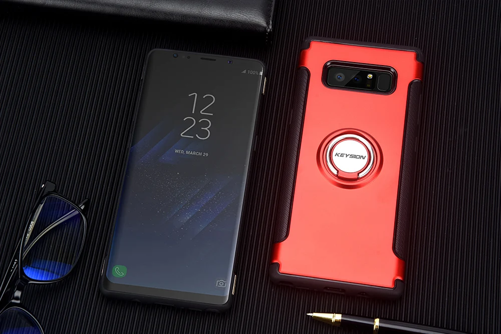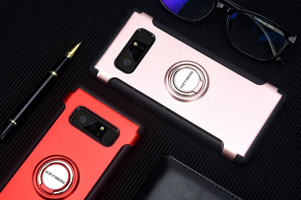 KEYSION Case for Samsung Galaxy Note 8 Car Holder Stand Magnetic Suction Bracket Cases Finger Ring TPU + PC Cover for N950 N950F