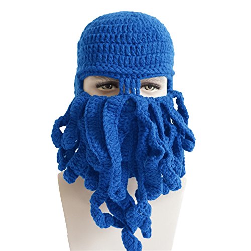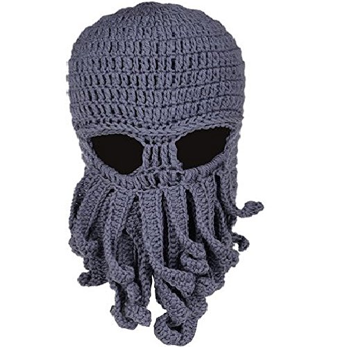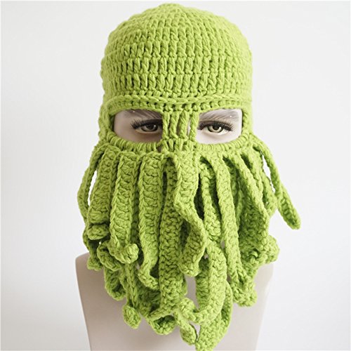 MOONPOP Unisex Handarbeit Lustige Oktopus Strickmutze Bartmutze Stickmutze Hakeln Wollmutze Windschutz Mutze Halloween Party Maske Gesichtsmaske