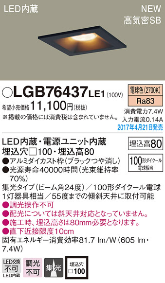 ●寸法(mm):埋込穴□100・埋込高80