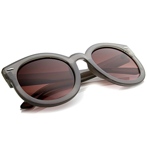 You get the best of both worlds with these bold oversized horn rimmed with flat edges and super round lenses. A combination of classy and vintage style make these perfect for all the seasons. Made with an acetate based frame, metal hinges and polycarbonate UV protected lenses. Lens Height: 48 mm | Lens Width: 53 mm | Bridge: 22 mm | Frame Total: 145 mm