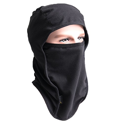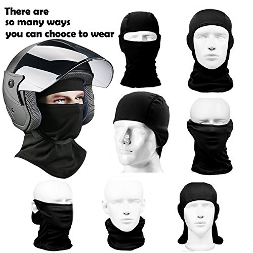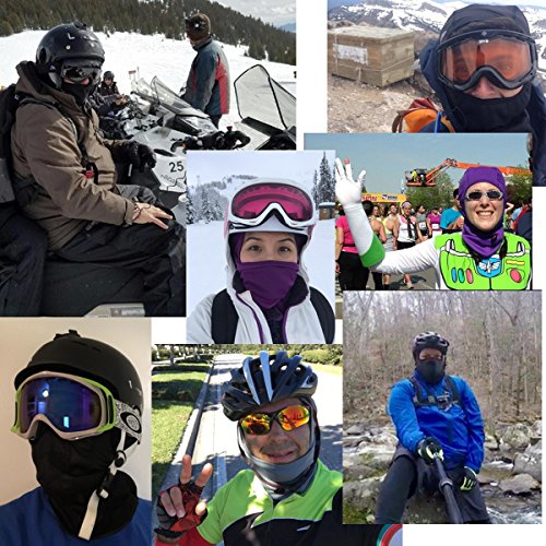 Heavyweight warm balaclava comes with amazing features to ensure optimal comfort and protection against harsh weather conditions. The extra length in the front and back extends to into your jacket to help completely seal out the cold. Ski face mask windproof, soft comfortable to giving you head, ear and neck enough protection against cold and wind. The one-size-fits-all easily fits, stays comfortable and is a perfect fit for men, women and children. The exceptionally breathable fleece hood adds to the overall comfort. Extremely breathable fleece hood is you best partner on the road in bitter-cold conditions. . Warning: Keep away your balaclava from heat sources and flame. This may cause damage.
