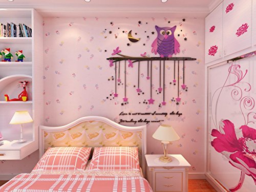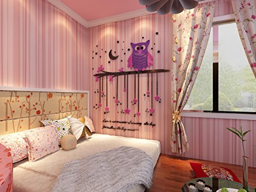 -. Title : Plastic Wall Decal Wall Decor, Beautiful Tree with Hanging Owls Pink Flowers, wall art saying sticker quote Home Decor large Wall Stickers