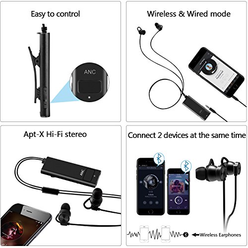 Wireless-The latest?apt-X Bluetooth 4.1?technology ensures a reliable, clear connection Wired- 3.5mm cable?and conserve your battery,ensure?Universal Compatibility and offer the highest quality connectivity? Only ANC- Use the?Active Noise Cancelling (ANC)?feature by itself to enjoy peace and quiet