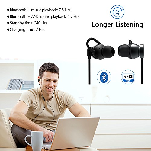 Active noise cancelling Wireless and Wired? ?AptX Hi-Fi Stereo? ?Bulit-in Microphone? ?Up to 7.5 Hours Playtime?