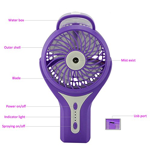 Thosdt Misting Fan,2 in 1 Mini Handheld USB Misting Fan with Personal Cooling,Mist Humidifier Portable for Home Office and Travel,Built in 2200mAh Rechargeable Battery (Purple)