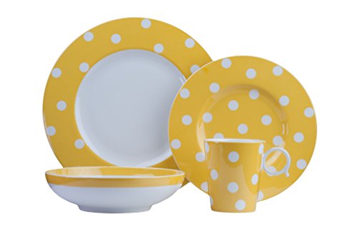 Red Vanilla 4 piece Freshness Dots Place Setting with Coupe Bowl, Yellow