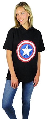 -. Feature : Officially licensed by Disney / Captain America Short Sleeve Hoodie Black / Made of a super soft cotton polyester blend. the luxurious feel will keep you feeling warm whether lounging around the house or going to the gym / Material: 60% Cotton 40% Polyester / Modeled in size small. Listed in unisex sizing. To be worn baggy. For a tighter more form fitting fit please purchase a size below your usual size.
