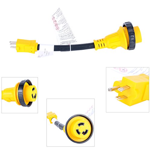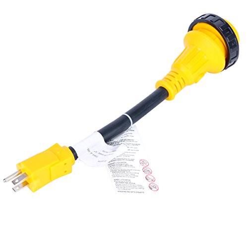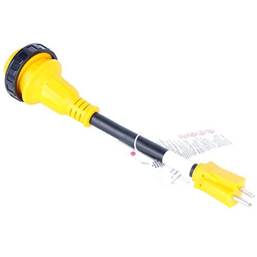8milelake 12" Pigtail Adapter RV Power Cord Adapter 15 amp male to 30 amp female locking connector