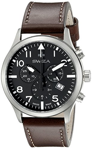 -. Binding : Watch -. Brand : Swiza -. Department : mens -. EAN : 7640167731084 -. Feature : This aviator style 42mm stainless steel case features a genuine calf leather strap and a sapphire coated crystal over an intelligently organized chronographic dial; the chronograph functions are shown across the 3 subdials at 3, 6 and 9 o'clock that feature seconds, the day of the week, and a stop watch/30 minute counter / Made in Switzerland / Swiss-quartz Movement / Case Diameter: 42mm / Water Resistant To 330 Feet -. Label : Swiza Watches MFG Code -. Manufacturer : Swiza Watches MFG Code -. Model : WAT.0353.1002 -. MPN : WAT.0353.1002 -. PartNumber : WAT.0353.1002 -. ProductGroup : Watch -. ProductTypeName : WATCH -. Publisher : Swiza Watches MFG Code -. Studio : Swiza Watches MFG Code -. Title : Swiza Men's WAT.0353.1002 Siriuz Analog Display Swiss Quartz Brown Watch