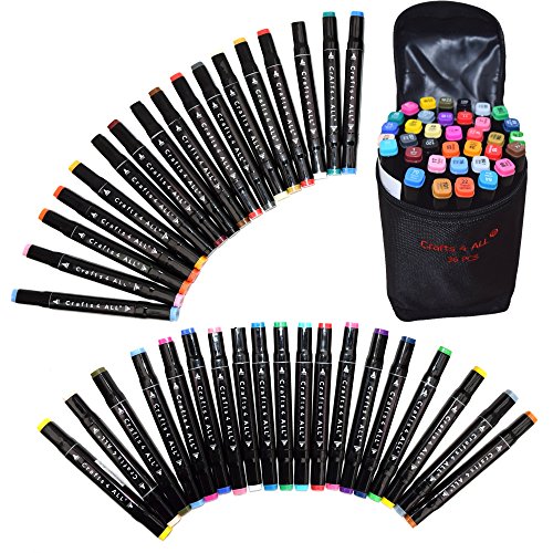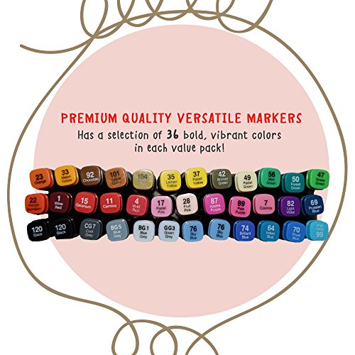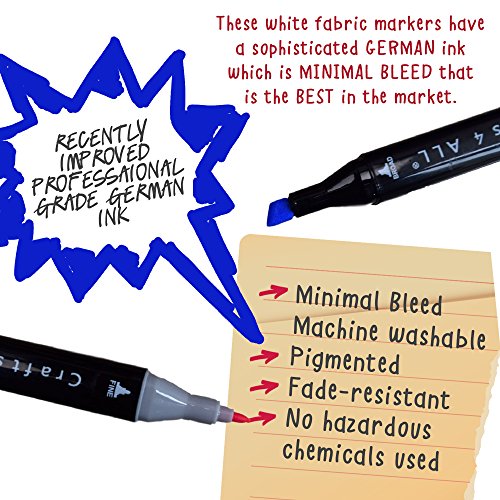 Fabric Markers Pens Permanent 36 Color Dual Tip MINIMAL BLEED Rich Pigment Fine Graffiti Fabric Paint Quality by Crafts 4 All. Child Safe & Non Toxic