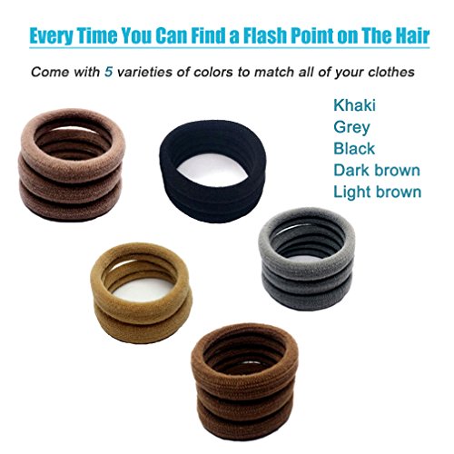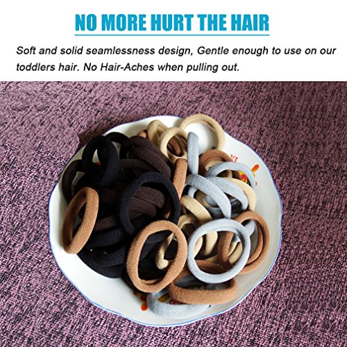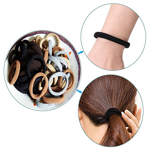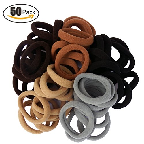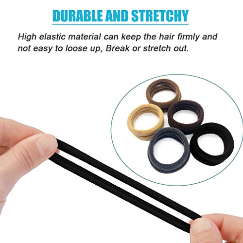Lintopos Elastic Hair Bands Ties Girl, Thick Hair Rubber Band Ponytail Holders (50 PCS 5 Colors)