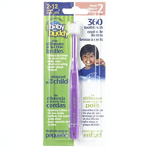 ReleaseDate : 2015-12-23 Studio : Baby Buddy Publisher : Baby Buddy Binding : Baby Product Product Description Turn brushing teeth with your child into a positive experience after every meal and at bedtime with Baby Buddy's 360 Toothbrush. Stage 6 of a complete, 6-Stage Oral Care System, these innovative care products grow with your child from birth to age 12. The first 4 stages are designed to take care of budding baby teeth from the start with state of the art, safe and soft products that children love to chew on. Stages 5 and 6 progress to distinctive toothbrushes for ages 4 months to 12 years that easily clean those hard-to-reach places where food and plaque can build up and cause cavities and other oral problems. Baby Buddy's 360 Toothbrush Step 2 (Stage 6) revolutionizes the industry with its innovative design featuring bristles 360˚ around the toothbrush head that are devised specifically for your child's tender teeth and gums. Over 10,000 short but highly elastic bristles gently massage gums and effectively clean the cheek and gums. And because of its unique design, brushing is always at a 45 degree angle, allowing parents to train kids, juniors, and pre-teens to brush teeth, tongue, and gums without needing to twist their wrist. This unique patented design can be used with water only to clean teeth to help remove harmful bacteria and sugar buildup that typically causes tooth decay. Developed in partnership with the Osaka University Infant Dental Clinic, the 360 Toothbrush Step 2 (Stage 6) effectively removes almost twice as much plaque as conventional, one-sided toothbrushes, when brushing for 2 minutes. The 360 Toothbrush Step 2 has been sized with 2-12 year olds in mind. Give your child the gift of a lifetime of good oral care habits with the innovative 360 Toothbrush Step 2 (Stage 6). Check out our other Baby Buddy products because Every Baby Needs a Buddy. 0