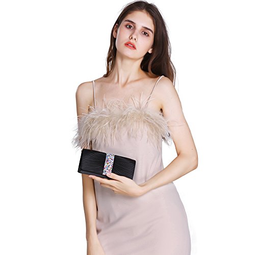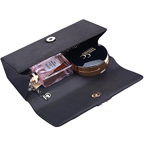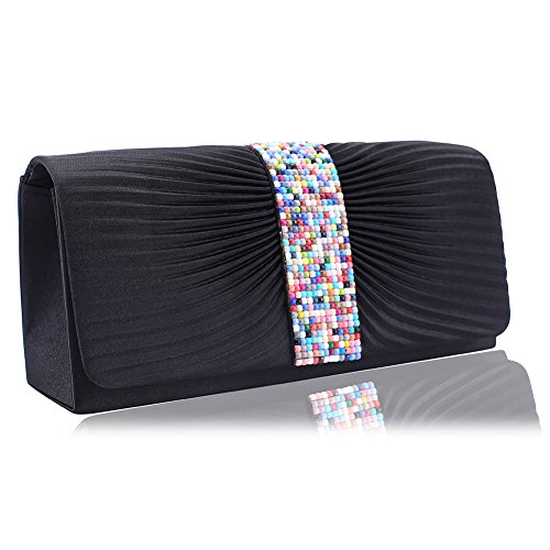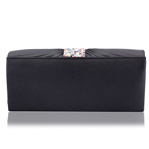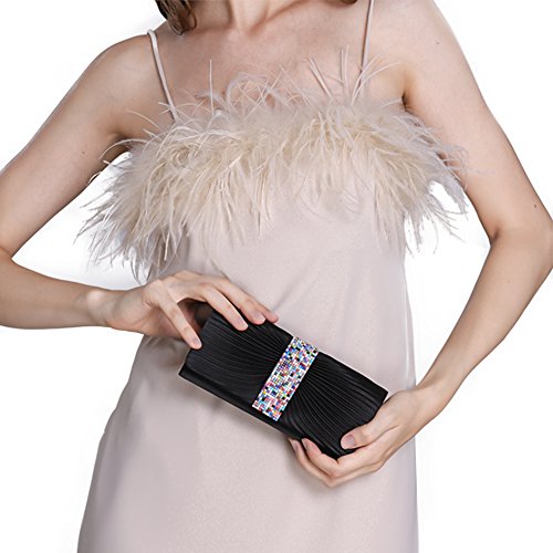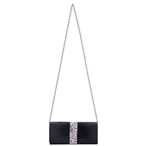 -. Feature : Perfectly pleated satin fabric with colorful rhinestone highlight your style. / Magnet snap closure . A Detachable Chain with22 inch,can be use as a shoulder bag or crossbody bag. / Purse Measurement is approximately::8 in (L) X 2 in (W) X 3.4 in (H) . / This clutch bag has a main compartment and a slip pocket that offers ENOUGH storage for your cell phone, lipstick, cash and credit cards, and makeup so on. / Perfect for night out, date, cocktail party, family reunion, prom, banquet and so on .