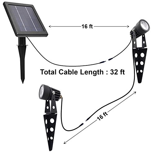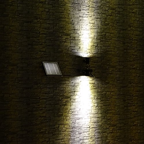 New improved feature, two-way mounting: stake-to-ground OR wall-mount with mechanical fasteners to create soft downlight / uplight ascend. Package includes: 2*cast Aluminium solar light fixture with spike, 1*remote solar panel with spike