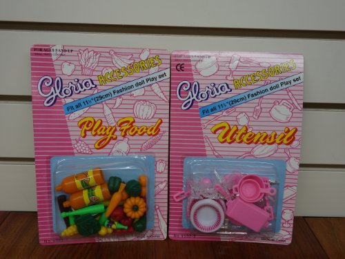 -. Binding : Toy -. Brand : gloria -. EAN : 6903514952039 -. Feature : Gloria Kitchen Utensil & Vegetable Play Set / Suitable for Barbie sized doll house furniture / For Over 3 Years Old Kids -. IsAdultProduct : 0 -. Label : gloria -. LegalDisclaimer : 100% Brand New! Play Food Buyer will receive exactly as pictured above The Furniture Play Set Fit All 11 1/2" Size Barbie Dolls • Color May Vary The toy is recommended for the children 3 - 12 years. International Buyers, Please Contact Us for Shipping Fee. -. Manufacturer : gloria -. MPN : FBA_9502-3 -. PackageQuantity : 1 -. PartNumber : FBA_9502-3 -. ProductGroup : Toy -. ProductTypeName : TOYS_AND_GAMES -. Publisher : gloria -. Studio : gloria -. Title : Barbie Size Kitchen Utensil & Vegetable Accessories Set (Set of Two)
