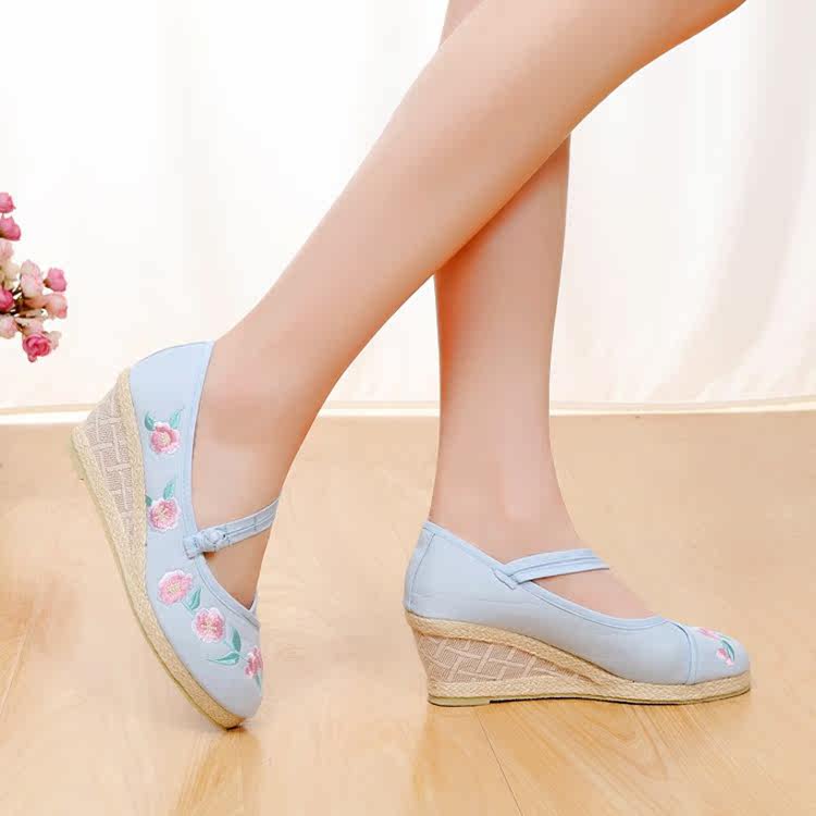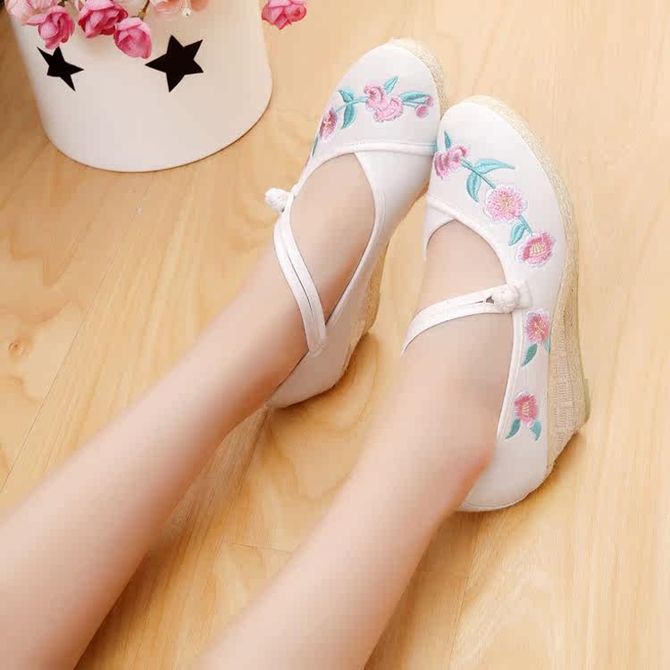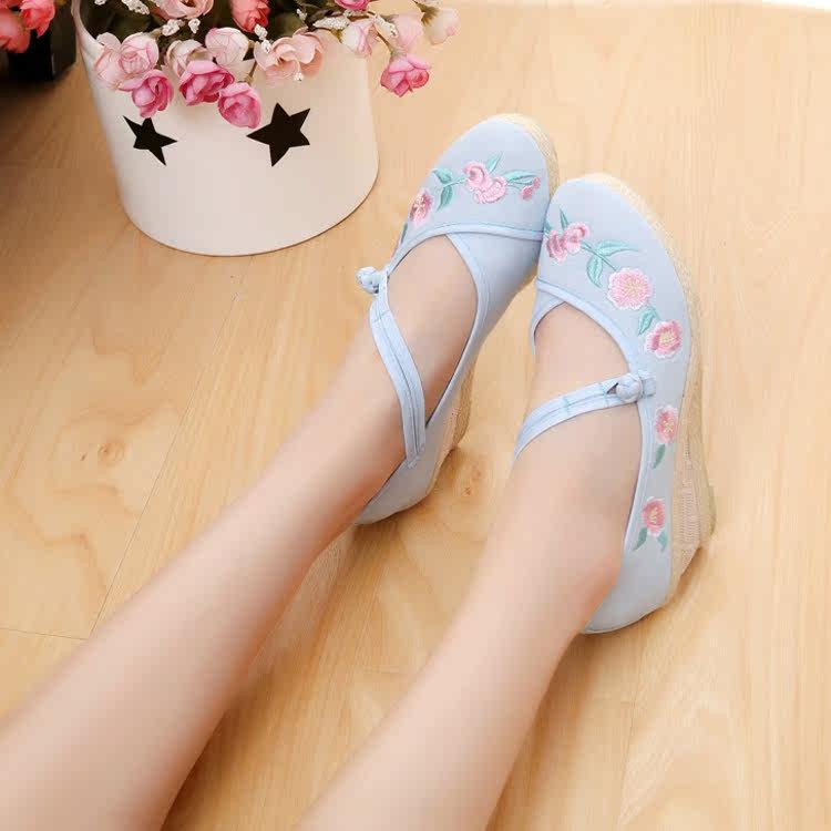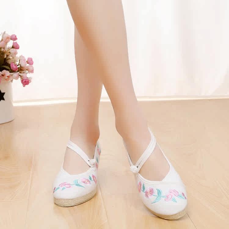古风绣花鞋女新款高跟仙女鞋子女民族风平底舞蹈鞋中国风复古