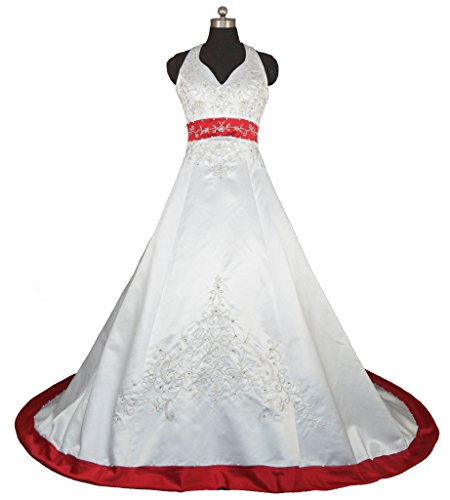 | (Vantexi)/Women/Dresses/DIRECT FROM USA/Vantexi Embroidery Satin Halter Wedding Dress Bridal Gown |