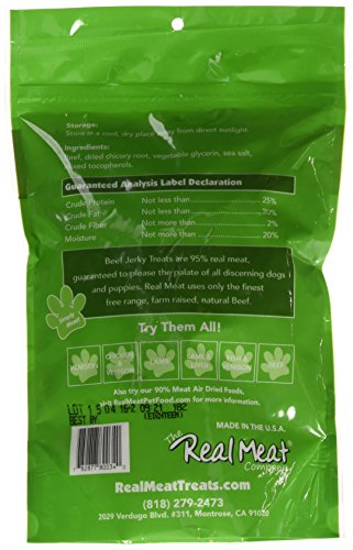 -. Binding : Misc. -. Brand : The Real Meat Company -. Feature : 12 oz Pack / Delicious and healthy all natural jerky treats / Made from the finest free range grass fed meats with no added hormones or antibiotics / The best training treat, soft, easy to carry, healthy and easy to feed / Made in USA -. Label : The Real Meat Company -. Manufacturer : The Real Meat Company -. PackageQuantity : 1 -. ProductGroup : Pet Products -. ProductTypeName : PET_SUPPLIES -. Publisher : The Real Meat Company -. Studio : The Real Meat Company -. Title : Canz Real Meat JERKY Healthy Cat & Dog Reward Treats CHOOSE FLAVOR & SIZE