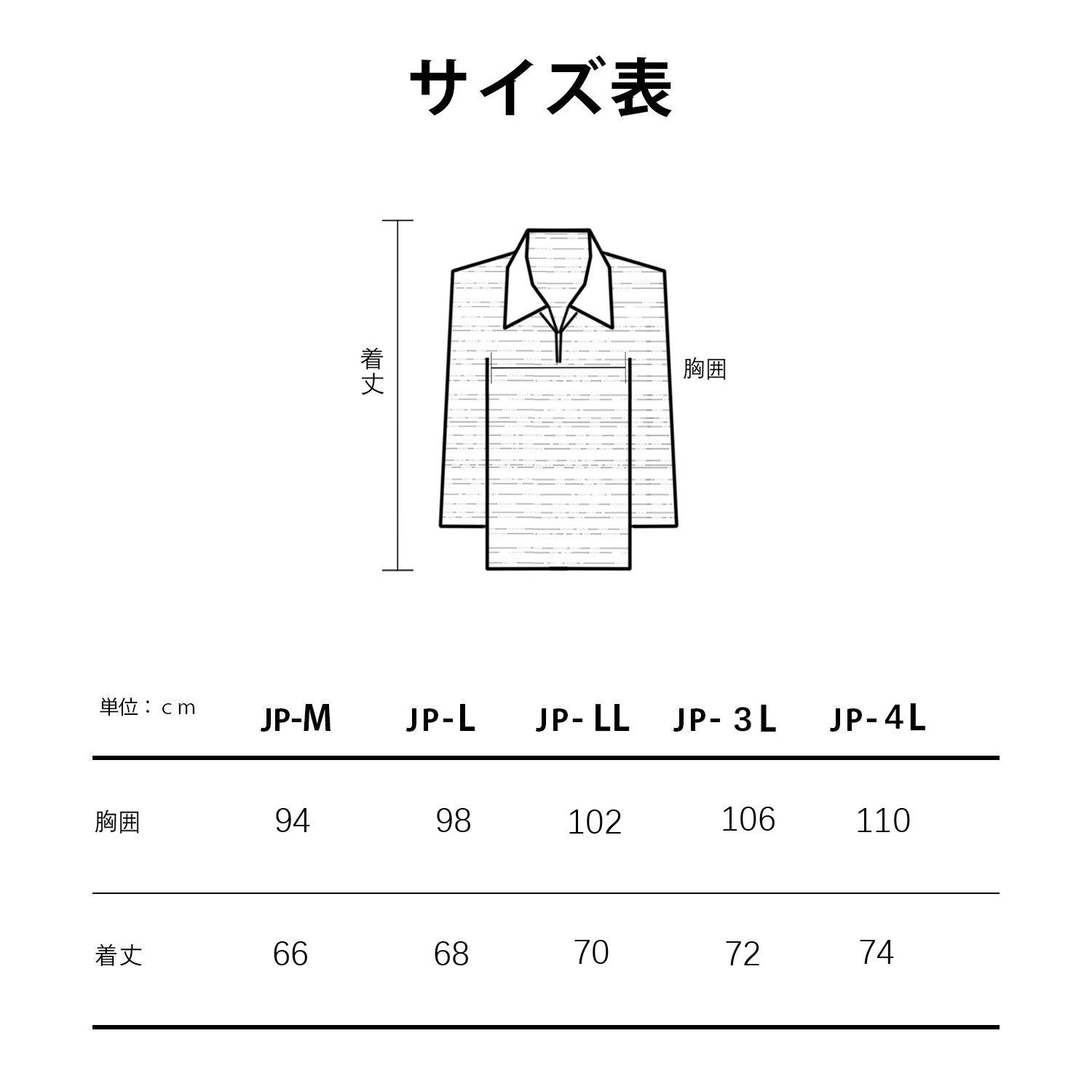 [L] Length: about 68 cm Chest: about 98 cm Shoulder width: about 43 cm Sleeve length: about 60 cm