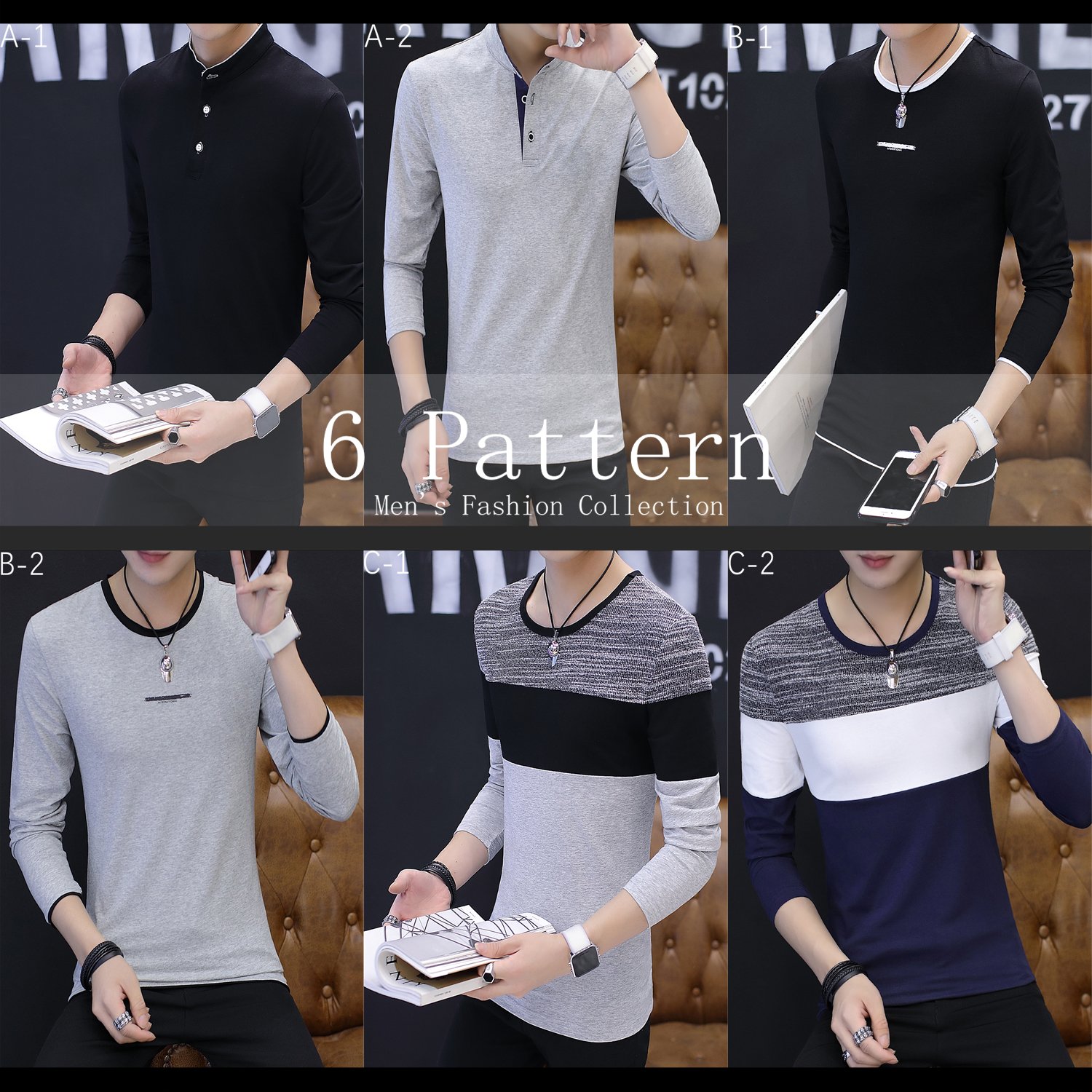 LEAFOR Men's Shirt Selection A1 - C2 color variations