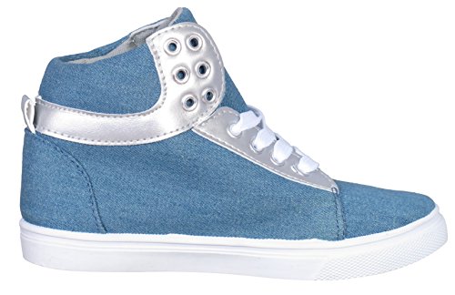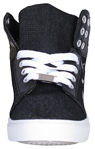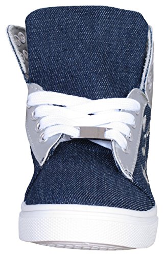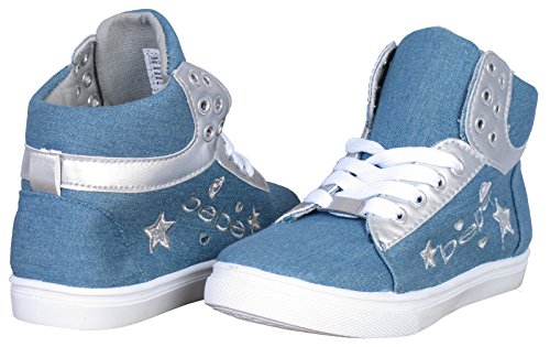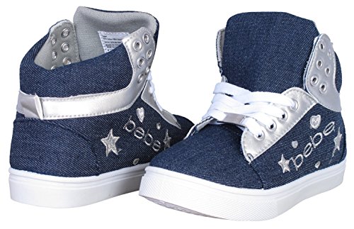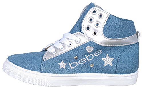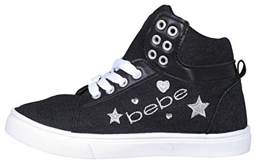 -. Binding : Apparel -. Brand : bebe -. Department : girls -. Feature : Easy Care; Spot Clean / Easy Slip On and Off with Laces / All Around Denim Material / Matching Bebe Heart and Star Embroidery on Sides / Comfortable Insoles; Please Reference the Product Description for More Details -. ProductGroup : Shoes -. ProductTypeName : SHOES -. Title : Bebe Girls High Top Denim Fashion Sneakers (Little Kid/Big Kid)