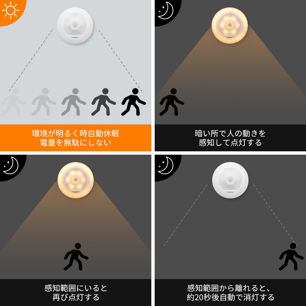 When the human body approaches 3-5 M of the LED light in a dark place, the LED light turns on automatically, after the human body gets away 20 seconds it automatically disappears.