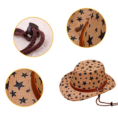 -. Binding : Apparel -. Brand : 3QMart -. Department : baby-boys -. Feature : One size,fit for kid's head circumference between 50-52cm/19.7-20.5" / String with buckle clip attached to the sun shade hat for windproof / Super fashion star cowboy hat makes your baby cool and stylish / A perfect accessory for daily wear or photo props / Suitable for wearing in spring,summer and autumn -. ProductGroup : Apparel -. ProductTypeName : HAT -. Title : 3QMart Kids Straw Cowboy Hats