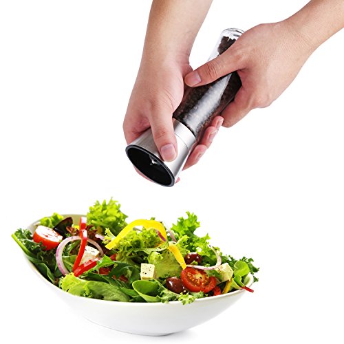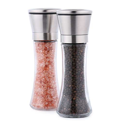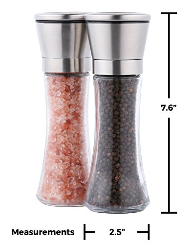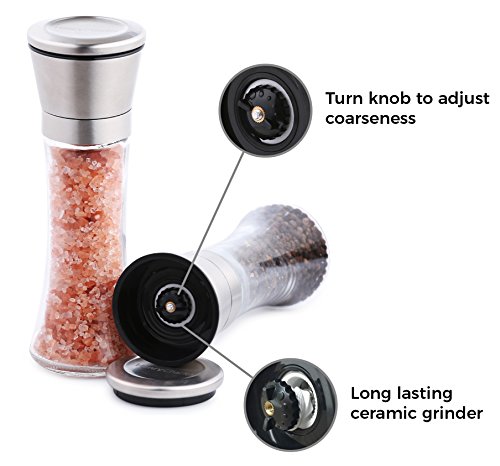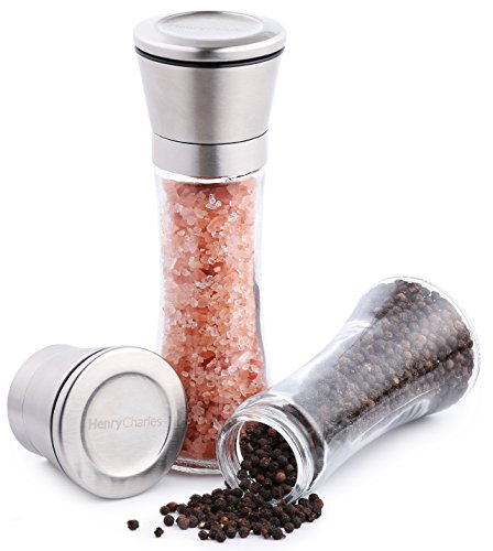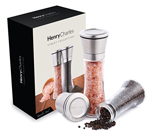 Henry Charles Finest Collection Salt and Pepper Grinder Set | Brushed Stainless Steel Salt and Pepper Shakers | 2 Mills with Adjustable Ceramic Grinder and Glass Body