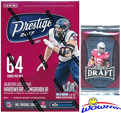 2017 Panini Prestige NFL Football EXCLUSIVE Factory Sealed Retail Box with 64 Cards Plus BONUS 2016 Leaf Football Pack! Look for RC’s & Autographs of Mitch Trubisky, Leonard Fournette & More! WOWZZER!