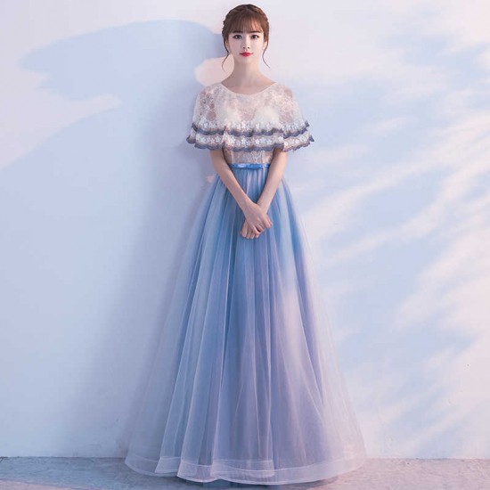 パーティードレス ロング丈 ワンピース バイカラー ガーリー ケープ フェアリー 清楚 透け感 ウエストリボン 大人 上品 可愛い お呼ばれ drgz2171