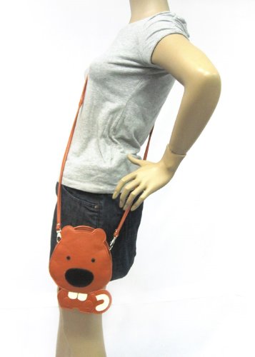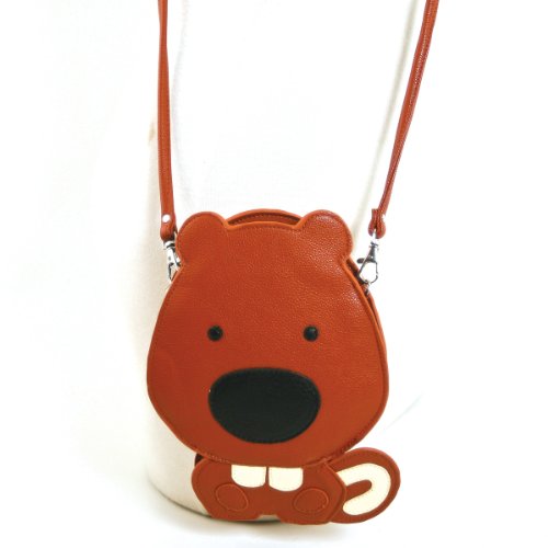 Sleepyville Squirrel Embroidered Faux Leather Shoulder Bag (Tan)