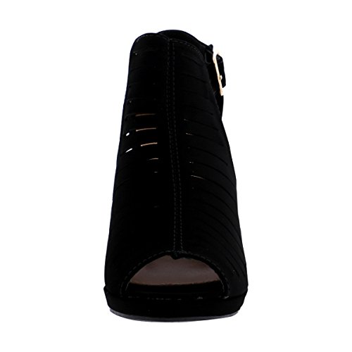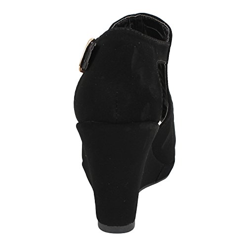 Product DescriptionSynthetic upper in black. Adjustable ankle strap with buckle up closure Soft textile interior lining for a good shoe feel. Gladiator inspired . Lightly cushioned and textured footbed provides all-day comfort and support. Wrapped wedge heel with durable manmade outsole offers excellent traction.0