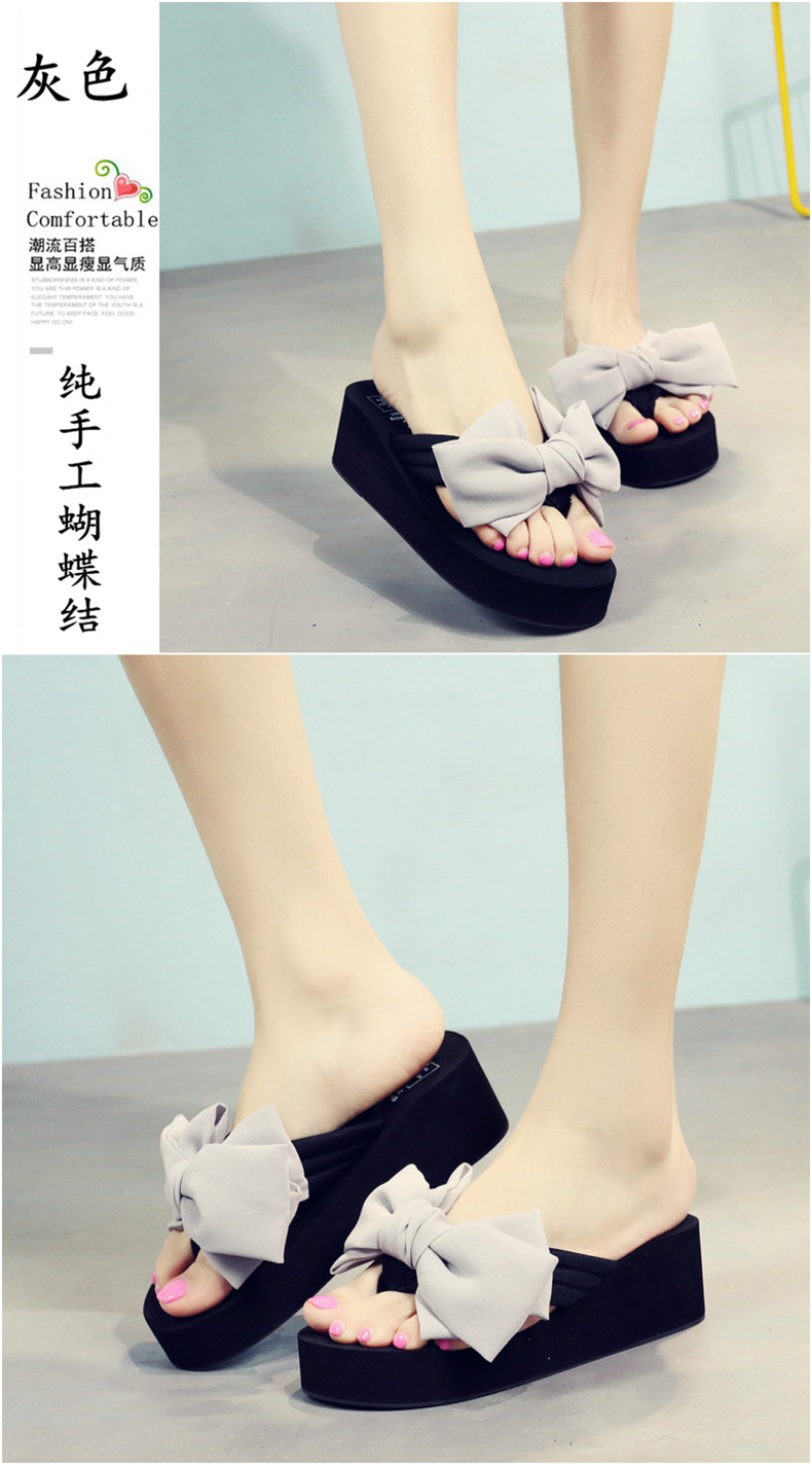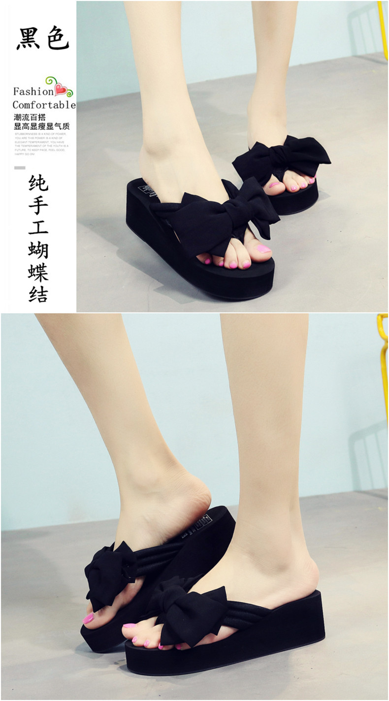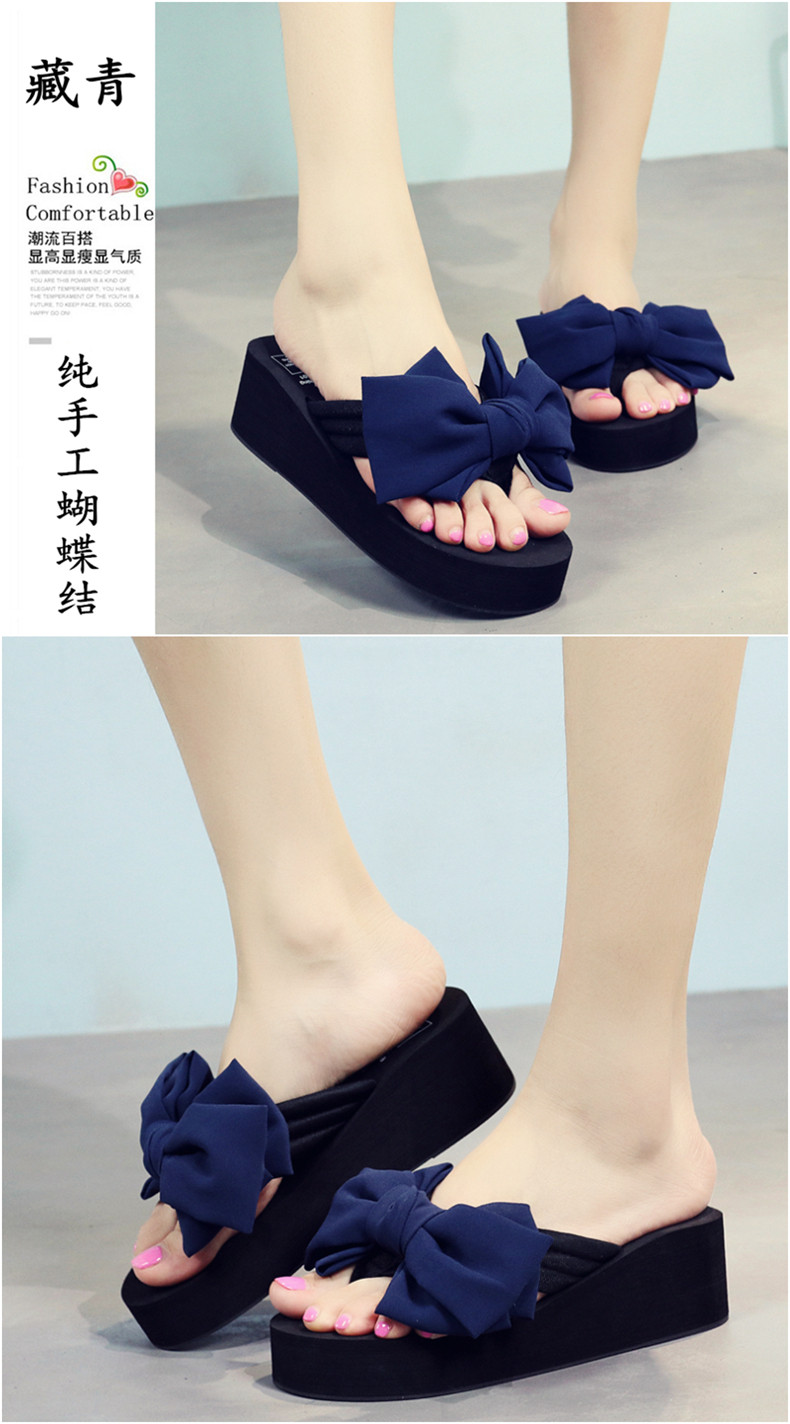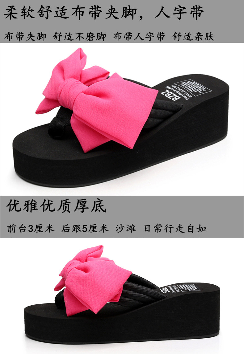 外穿厚底夹脚拖鞋女夏时尚韩版蝴蝶结人字拖坡跟沙滩鞋防滑凉拖鞋
