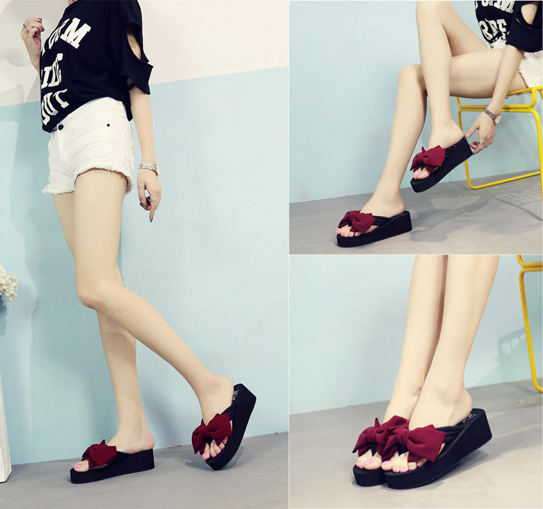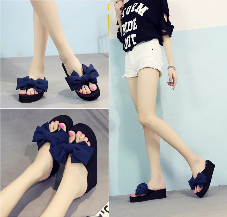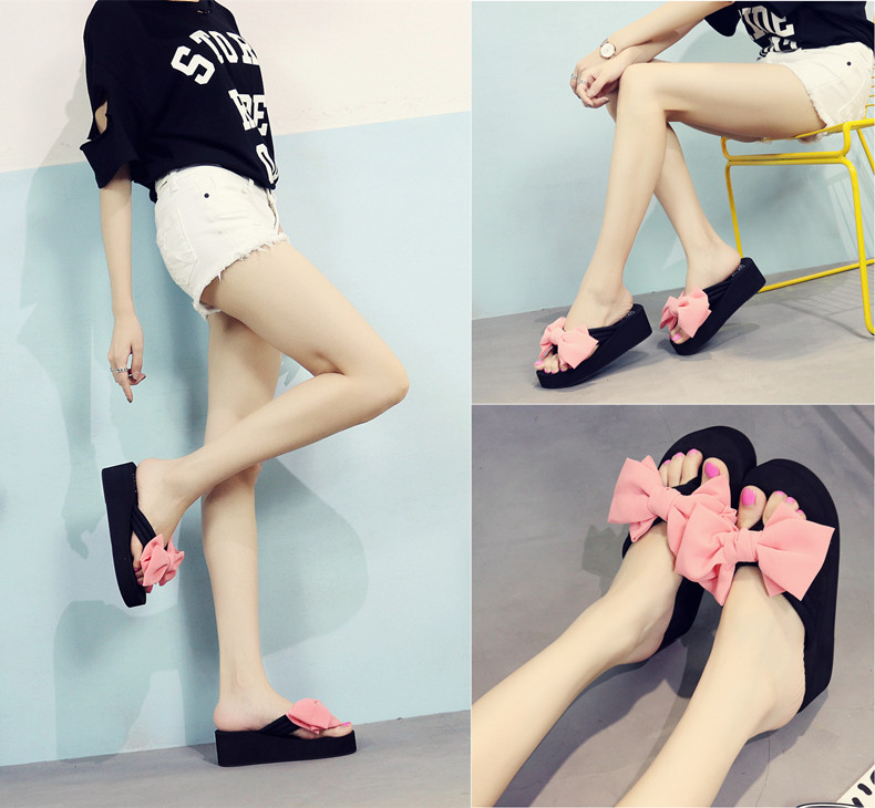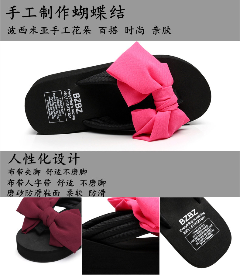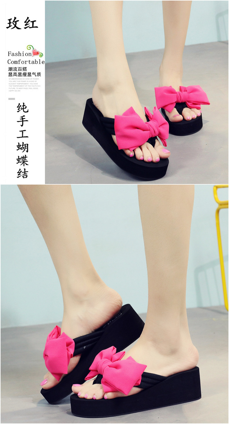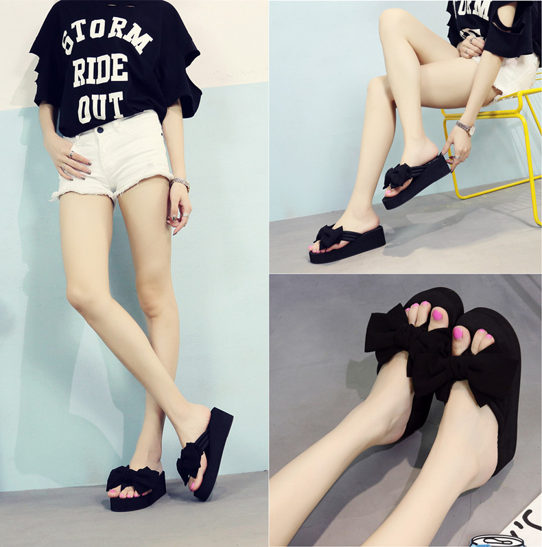 外穿厚底夹脚拖鞋女夏时尚韩版蝴蝶结人字拖坡跟沙滩鞋防滑凉拖鞋