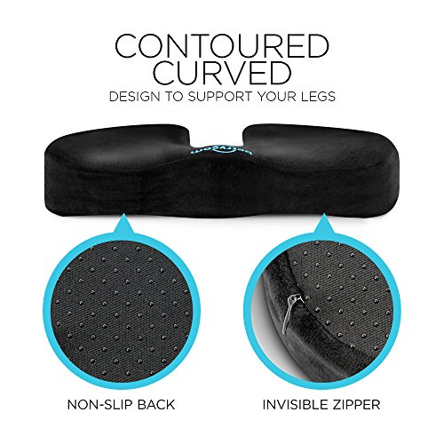 USE ANYWHERE - Great fit for office chair, car seat, wheelchair, truck, plane, computer desk, stadium seats, couch, bench. The non - slip back ensures that pillow stays in place and does not shift away from seat. NOTE: Memory foam seat cushion designed to relieve pain from sitting but for some people only doctor can provide relief for all of the symptoms.