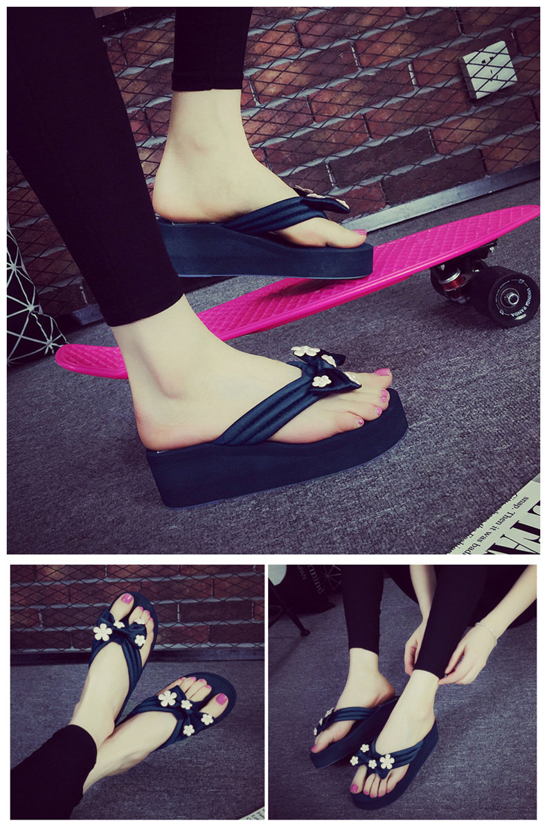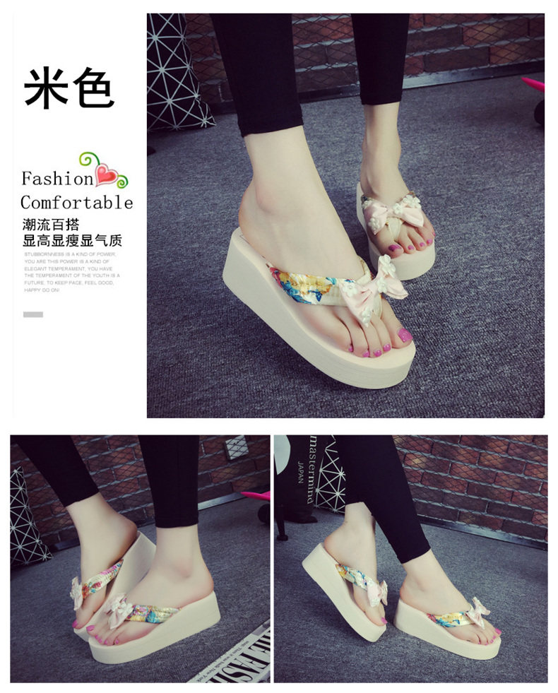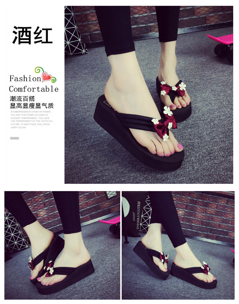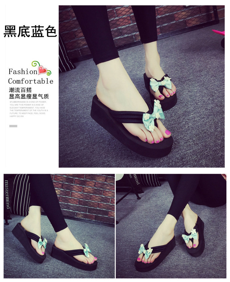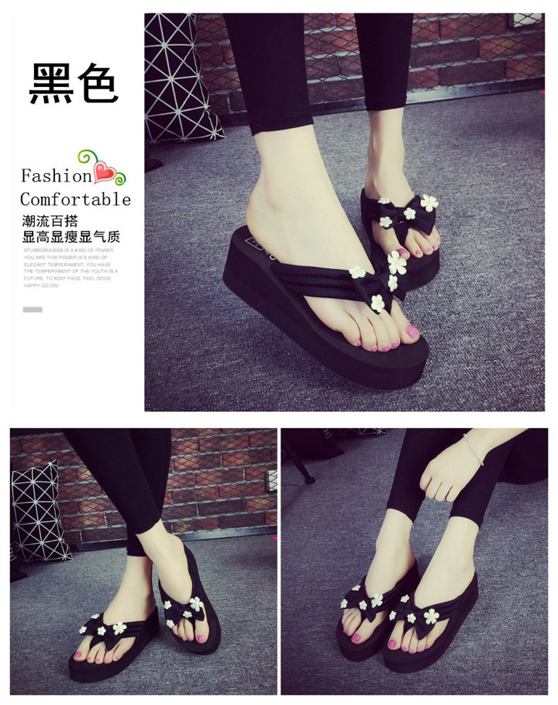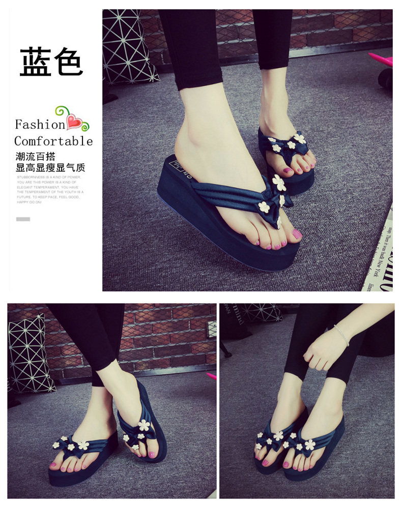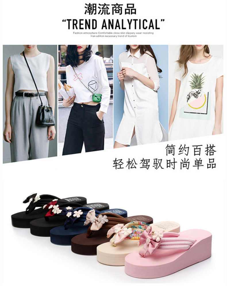 新款时尚厚底人字拖鞋女夏韩版简约坡跟凉拖鞋夹脚防滑沙滩鞋