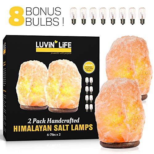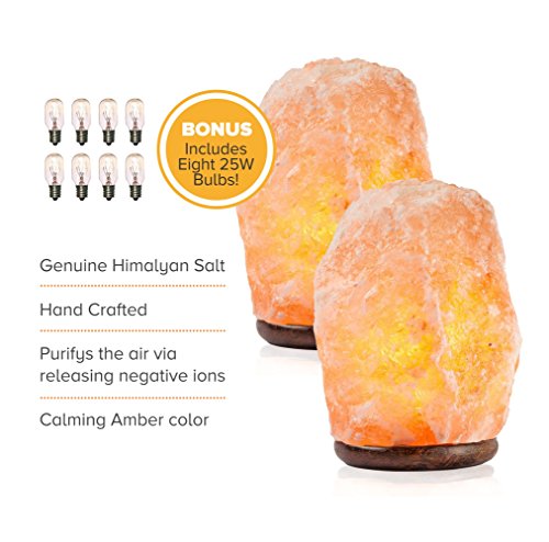 ✅ AMAZING BONUS OFFER !: The only Salt Lamp 2 Pack on Amazon that includes 8 Bonus Himalayan Salt Lamp Bulbs ! These quality 25W bulbs give a long lasting glow. Also includes a Free Bonus E-Book a Beautiful Gift Box!