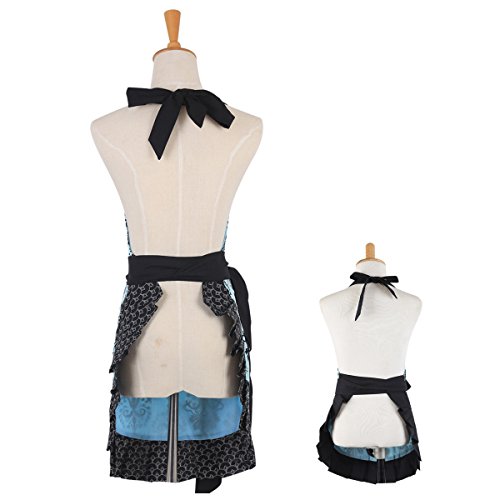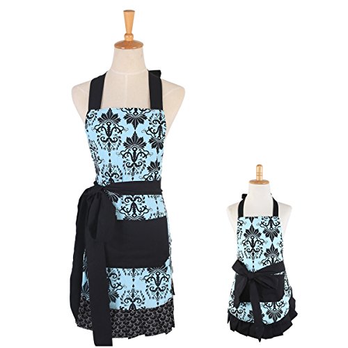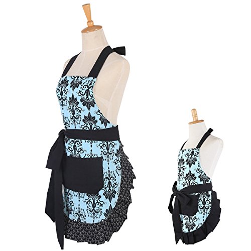 Surblue Mom Children Painting Aprons Smocks for Women Retro Vintage Floral Apron for Cooking Gardening Aqua Damask