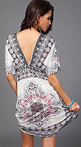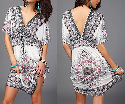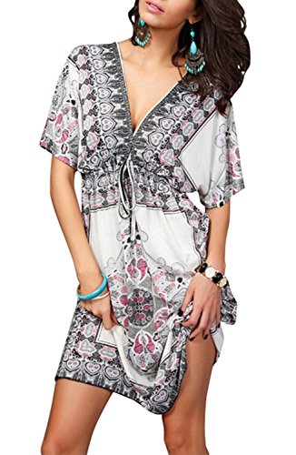 Women Sexy Floral Bohemian Beach Dress Bikini Cover Up Medium White