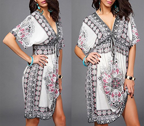 Women Sexy Floral Bohemian Beach Dress Bikini Cover Up Large White
