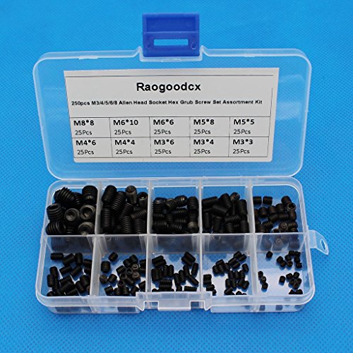 Raogoodcx 250pcs M3/4/5/6/8 Allen Head Socket Hex Grub Screw Set Assortment Kit with Plastic Box 12.9 Class Black Alloy Steel